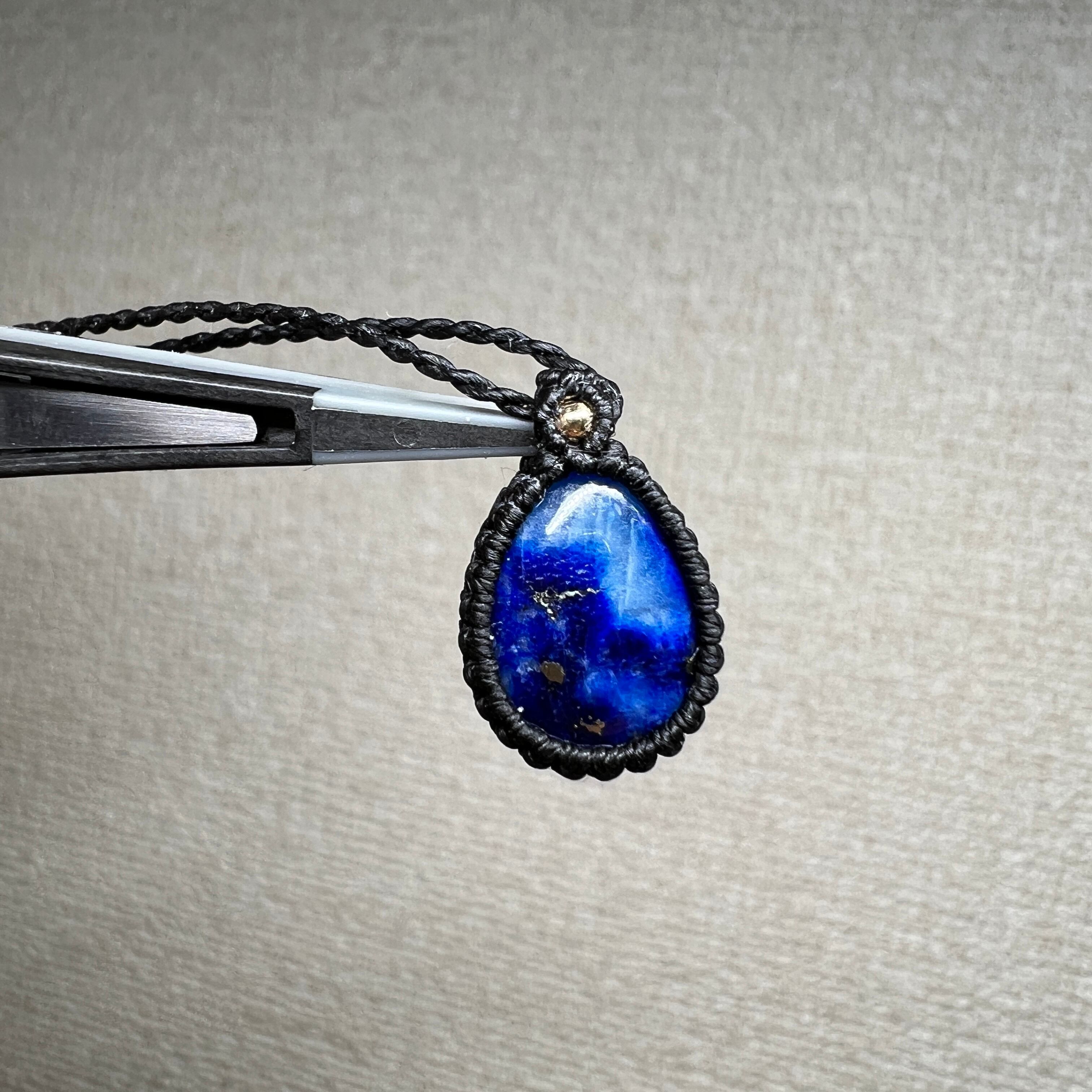 パイライトinアフガナイト 〜ブルーグラデーションに輝く黄鉄〜 マクラメネックレス